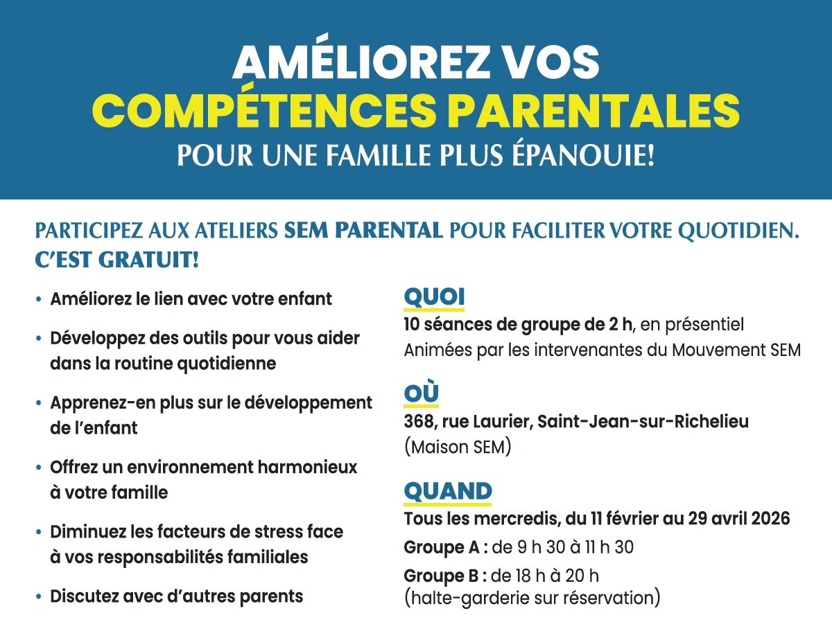 Un membre de l’équipe SEM Parental communiquera avec vous par courriel dans un délai de 72 heures afin de poursuivre le processus d'inscription et répondre à vos questions.